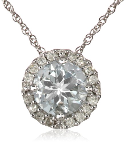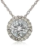 10k White Gold Aquamarine and Diamond (0.1cttw, G-H Color, I2-I3 Clarity) Circle Pendant Necklace, 17″ by Amazon Curated Collection
