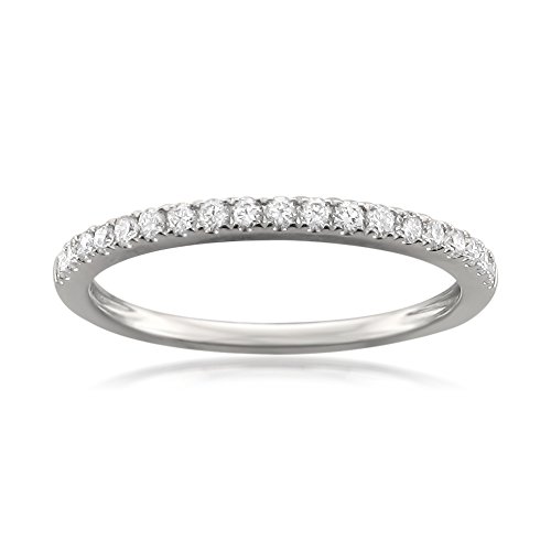 DescriptionThat extraordinary woman deserves an exceptional ring, and whether you are celebrating the beginning of your fairytale or your happily ever after, this 1/4 cttw diamond wedding band is the perfect accessory. A stunning 19 round diamonds are micro-pave set on a gleaming 14K white gold band. Additionally, we guarantee our diamonds are conflict-free and in accordance with the Kimberley Process Certification System, a UN-backed practice that certifies that origins of our diamonds are from sources free of conflict and acquired through friendly mining.