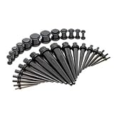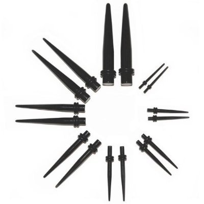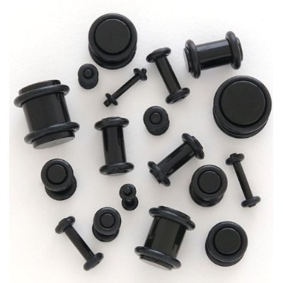 - Sixteen Pieces Black Acrylic Ear Taper Stretching Equipment 14g – 0g & 14 Piece Black Acrylic UV Double O-Ring Plug Set 10g – 00g Ear Expander Equipment