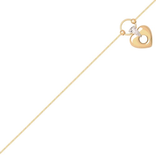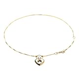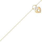 Klassics 10k Yellow Gold Open Puff Heart with Rhodium Anklets, 9+1″ Extender by Amazon Curated Collection