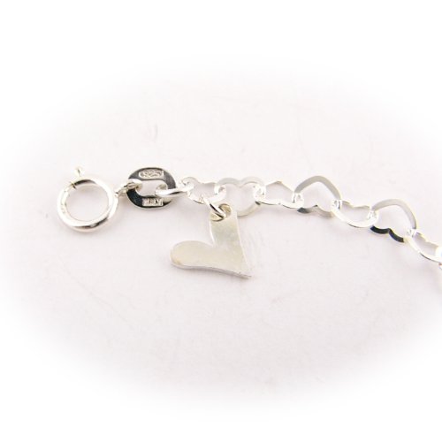 DescriptionAuthentic 925 sterling silver flat Heart Link (each Hyperlink is approx 4x5mm) chain bracelet and tiny flat Coronary Heart Charm, approx 8x9mm , made in Italy. Nickel free. Present field or pouch incorporated, coloration may range.
