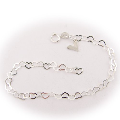 Sterling Silver Flat Heart Link Charm Anklet Nickel Free Italy 9.5 Inch by Bracelets, Anklets by Joyful Creations