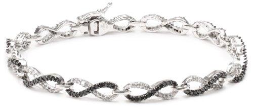 Radiant black and glowing white diamonds hint figure-eight shapes in this based infinity link bracelet. The 7-inch bracelet is crafted in 10 karat white gold and holds a complete of 252 small spherical diamonds (1 1/2 cttw). This Can Be A versatile accent that may be worn dressy or casual. It closes with a field clasp.