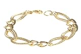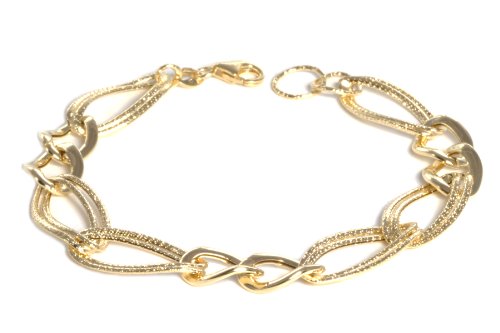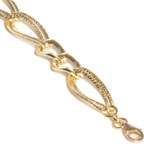14k Italian Yellow Gold Polished and Textured Double Oval Link Bracelet, 7.5″ by Amazon Curated Collection