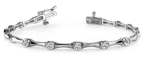 DescriptionHere's a lovely bracelet that Features 5 bezel set diamonds related at the side of pretty gold or platinum columns. The column hyperlinks proceed the remainder of the way across the bracelet, making a lovely design. That You Can select to have us carefully craft it yellow gold, white gold or platinum and in 4 totally different sizes; from .25 ct. as much as 1.00 carat whole diamond weight. Customise this one as of late!