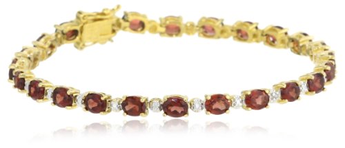 18k Yellow Gold Plated Sterling Silver Garnet and Diamond Accent Bracelet, 7.25″ by Amazon Curated Collection