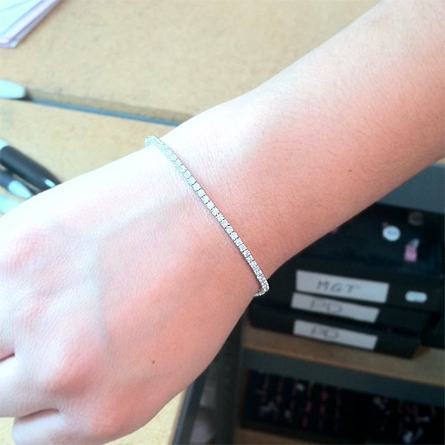 DescriptionThis classic fashion tennis bracelet features 81 round sensible minimize natural diamonds. All diamonds are prong set in 14k white gold. The bracelet is secured by way of a double locking clasp. 2.00ct complete diamond weight. Measure a regular 7 inch size.