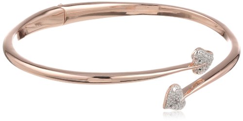 Bronze and 18k Rose Gold Plated Two-Tone Bypass White Heart Bangle Bracelet, 7.25″ by Amazon Curated Collection