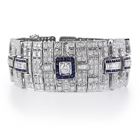 DescriptionThis stunning bracelet, designed in Italy, Features baguette reduce white diamonds and spherical good minimize diamonds of F color, VS2 clarity, excellent lower and brilliance, weighing 17.72cts whole, with baguette cut blue sapphires, weighing 5.52cts complete. Caviar beading is superbly featured, growing an Antique Style effect. This bracelet measures approximately 7.5 inches in length and a pair of.25 inches at the widest level.