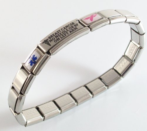 Breast Cancer Lymphedema Medical ID Alert Italian Charm Bracelet Left by Ailment Bracelets