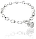 Sterling Silver Pave Simulated Diamond Heart Bracelet, 7.25″ by Amazon Curated Collection