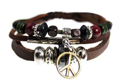 Stylish, three strand Actual Leather-based zen bracelet has a couple of strands with silver and wooden beads and a peace Sign dangle drop. This Simple to wear bracelet has pull cords and a middle slide knot. Opens from 5.5 to 8 inches. Wire ends are embellished with silvertone nuggets. And it arrives in a silver foil linen Reward Field Ready to provide or to send straight away to the recipient.