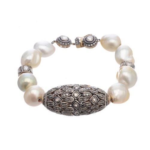 Diamond Pave Gemstone Beads Cord Bracelet Sterling Silver Wedding Jewelry by Socheec