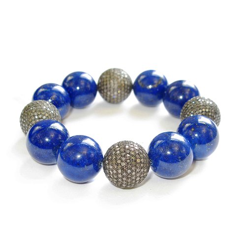 Sterling Silver Natural Lapis Beaded Cord Bracelet Diamond Party Jewelry by Socheec