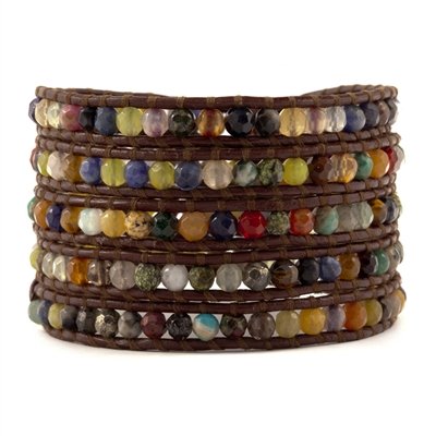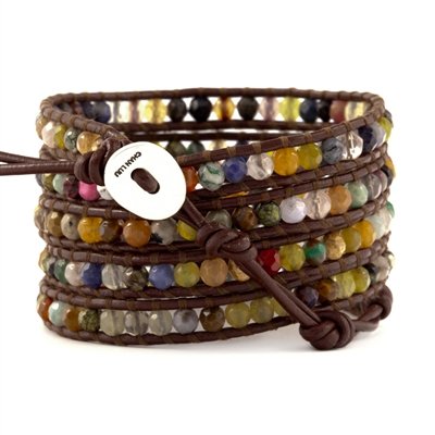 Chan Luu Multi Stone Wrap Bracelet on Brown Leather