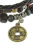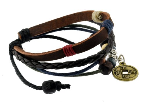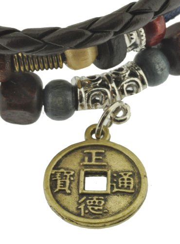 Chinese Ancient Coin Zen Bracelet / Leather Bracelet / Leather Wristband / Surf Bracelet Adjustable Size, for Men, Women, Boys and Girls, Teens, #338 by Leather Bracelet