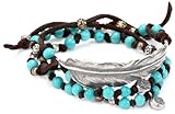M.Cohen Hand made Designs Triple Wrap Turquoise-Color Beads and Feather on Brown Leather Bracelet by M.Cohen Handmade Designs