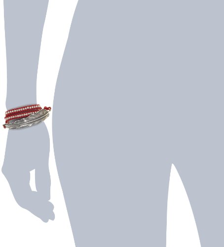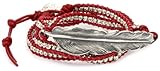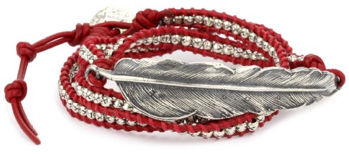 M.Cohen Handmade Designs Silver Feather and Silver Beads On Red Triple Wrap Bracelet by M.Cohen Handmade Designs