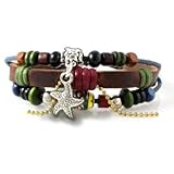 DescriptionNice Taking A Look multi-strand bracelet has 3 strands: one 6mm vast brown Leather and two strands cords stuffed with beads together with a silvertone steel starfish dangle bead, more than a few shapes of brown, black, green, blue and red Wooden beads, a handmade coloration ceramic Middle bead. The 6mm broad Leather-based strand has shade wraps of inexperienced and maroon crimson and an ornamental gold chain. Starfish measures .5 inches across. The slide knot within the again makes this totally adjustable to suit 6 to 9 inch wrists. Reward Field: Arrives in a foil linen foil Present Field with bow prepared for giving or sending directly to the Reward recipient. Adjust BRACELET DIMENSION: To Extend the size of the bracelet SIMPLY pull each and every side of the bracelet open on the ends near the cords. The Two cords will slide open to make a gap so one can be large enough to put hand through. Then, when on the wrist, pull the Cord ends to tighten to desired Fit. The stationary knot holds the cords in position.