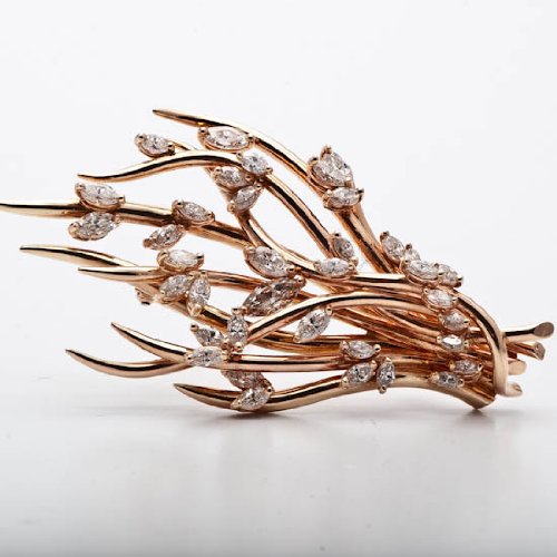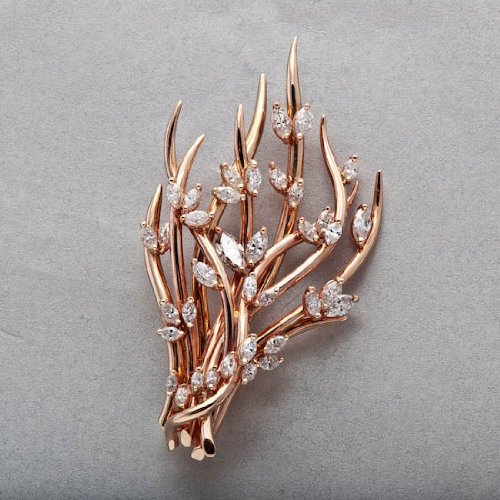 This pretty Property retro diamond Department design pin is crafted in strong 18K rose gold. This stunning pin is adorned with some 37 authentic marquise diamonds approx 6.00cts, H-I color, VS readability, prong set. This merchandise is in very 6ood situation!