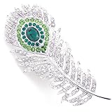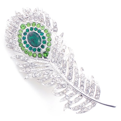 Emerald & Crystal Peacock Feather Brooch by Fantasyard