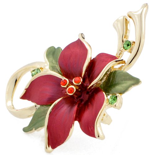 Red Poinsettia Christmas Star Flower Swarovski Crystal Pin Brooch and Pendant by Fantasyard