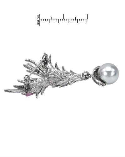 RUCINNI Enamel Faux Pearl and Crystal Women Brooch. Length 63 mm. Total Item weight 10 g. by Rucinni