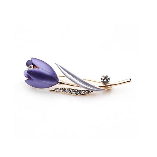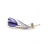 Simple Elegant Stem Flower Crystal Brooch Pin – Purple