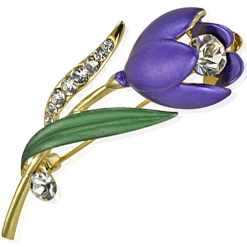Simple Elegant Stem Flower Crystal Brooch Pin – Purple by Dahlia