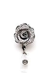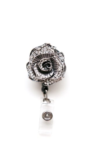 DescriptionRhinestone embellished Rose. Retractable Badge Reel for simple ID Swipe. Slide clip on back to clip on belt, shirt, scrubs, or lanyard. Great decorative piece to decorate up your day by day attire.