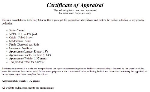 This Can Be A stunning new 14K Italy Allure. It Is A great gift for your self or a friend and makes one of the best addition to any Jewelry collection. Model- Casted Metallic- 14K Yellow gold Foundation- united states of america Strong/hole- Stable Finish- Diamond-minimize, Satin Gemstone- Artificial Approximate Size- 33mm (1.3″) Approximate Width- 16.3mm (Zero.Sixty Four”) Approximate Weight- 1.32 grams Roughly weighs 1.32 grams.