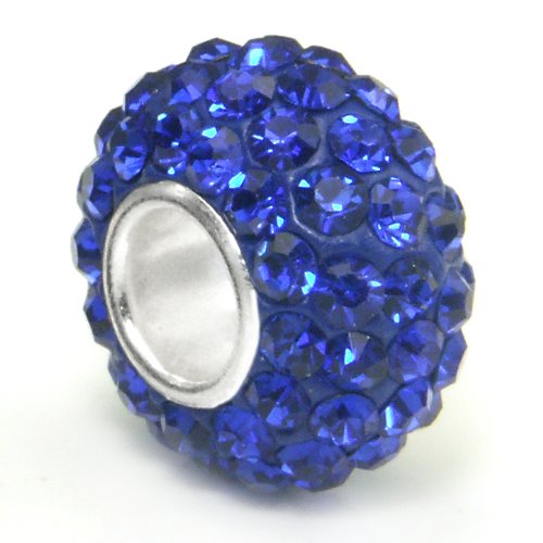 Swaroski Sapphire Blue Crystal Ball Bead Sterling Silver Charm Fits Pandora Chamilia Biagi Trollbeads European Bracelet by Metal Factory