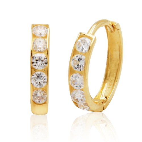 14k Yellow Gold Cubic Zirconia Channel-Set Baby Hoop Earrings by Amazon Curated Collection
