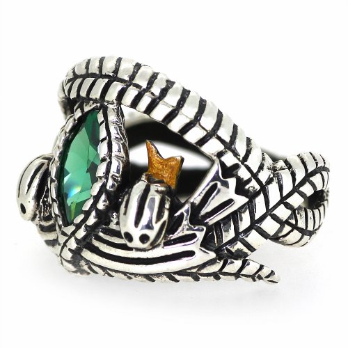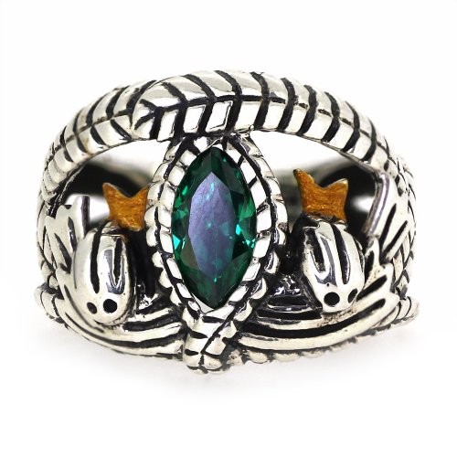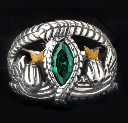 ARS Jewelery Lord of The Rings Style Aragorn's Ring of Barahir Real Sterling Silver Mens Boys Green CZ Ring Size 9 by ARS