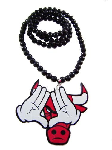 New Hip-hop Fashion Good Wood Black Chicago Bulls – Acrylic Shape Pendant Ball Bead Chain Necklace by Dream jewelry 2012