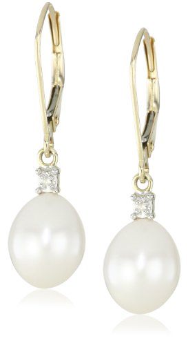 10k Gold Freshwater Cultured Pearl (10.5-11 mm) and Diamond (0.01 cttw, I-J Color, I2-I3 Clarity) Drop Earrings by Amazon Curated Collection