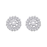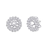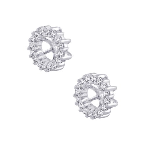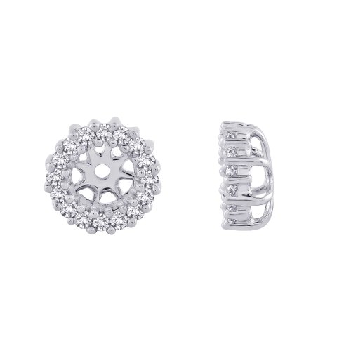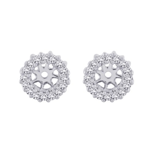 Transform your simple studs with these lovely earring jackets. Simply slip your earring post through the hole, and your earring is instantly haloed by dainty round cut diamonds set in 10k white gold. This pair of earring jackets can hold up to 1 ct. (total weight) studs. Studs are not included. Outer diameter: 0.32 in. Inner diameter: 0.17 in.