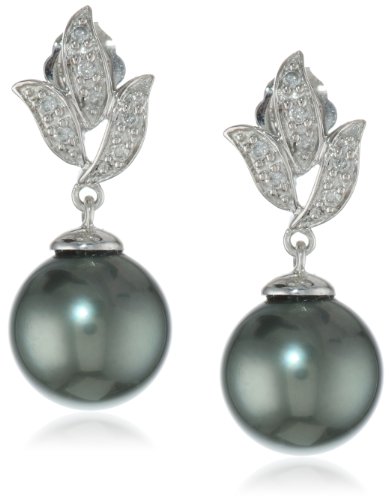 10k White Gold Black Tahitian Cultured Pearl with Diamond Accent Earrings (1/10 cttw, H-I Clarity, I2-I3 Clarity) by Amazon Curated Collection