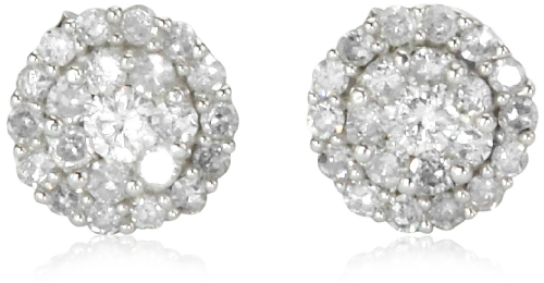 10k White Gold Round Diamond Cluster Earrings (1/4 cttw, I-J Color, I2-I3 Clarity) by Amazon Curated Collection