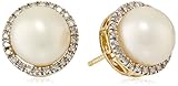 10k Yellow Gold Lady Di Freshwater Cultured Pearl and Diamond Stud Earrings by Amazon Curated Collection