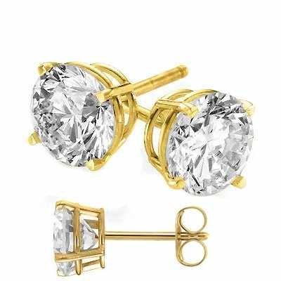 14 Karat Real Gold Plated on Authentic 925 Sterling Silver Stud Earrings. Nickel Free 2 Carat Total Weight Round Cubic Zirconia Diamond Quality Stones. by hypoallergenic earrings