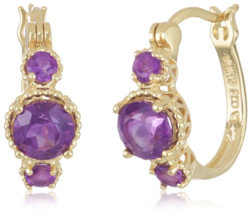 18k Gold Plated Sterling Silver African Amethyst Hoop Earrings (0.7″ Diameter) by Amazon Curated Collection