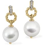 18k S. Sea Cult. Pearl Rough Diamond Earring .06ct 12mm Near Rd – JewelryWeb by JewelryWeb