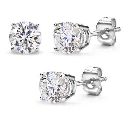 3.00 Carat Total Weight 7.50 mm Each Round Cubic Zirconia Earrings.Set On High Quality Heavy Settings. Nickel Free (Platinum Rhodium) Finish by hypoallergenic earrings