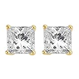 3.00ct. Princess Cut Diamond Stud Earrings 18k Yellow Gold (G-H, VS2-SI1) by Allurez