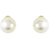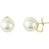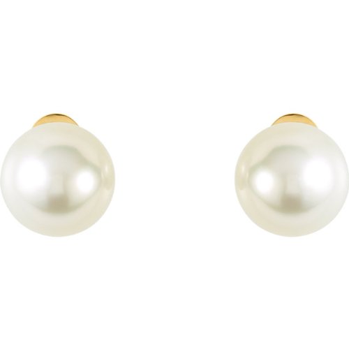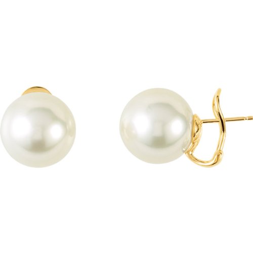 14k Yellow Gold Pair 15.00mm Fashion NEarrings Rd Pas Ss Cultured Pearl Earrings W/omega Backs by Enlightened Expressions