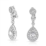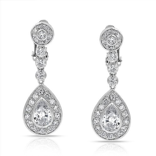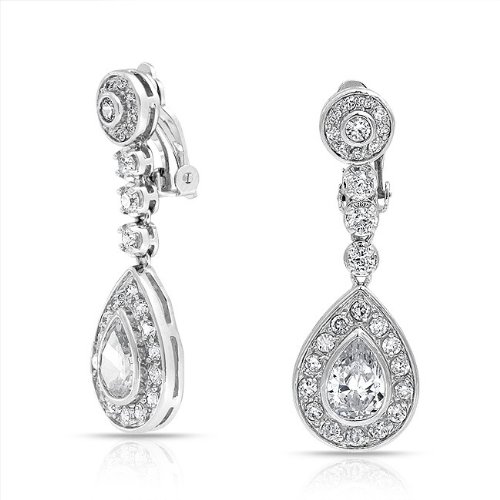 Bling Jewelry Large Dangle Teardrop CZ Bridal Chandelier Clip On Earrings by Bling Jewelry