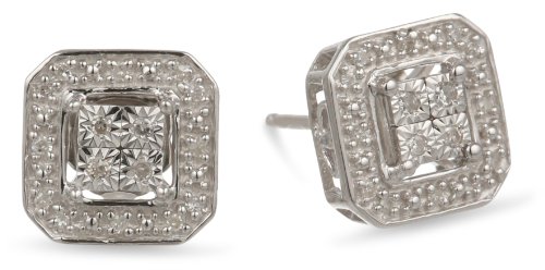 DiAura Sterling Silver Square Shape Diamond-Accent Stud Earrings by Amazon Curated Collection
