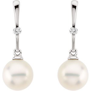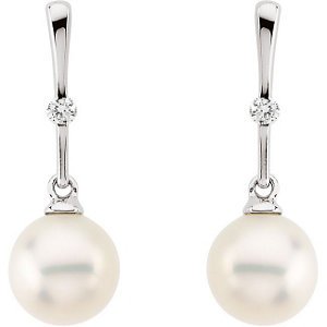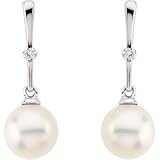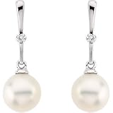 Genuine IceCarats Designer Jewelry Gift 14K White Gold Freshwater Cultured Pearl And Diamond Earring. Pair Freshwater Cultured Pearl And Diamond Earrings In 14K White Gold by IceCarats