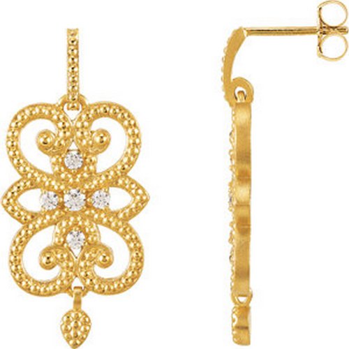 IceCarats Designer Jewelry 14K Yellow Gold Granulated Design Dangle Earrings. by IceCarats